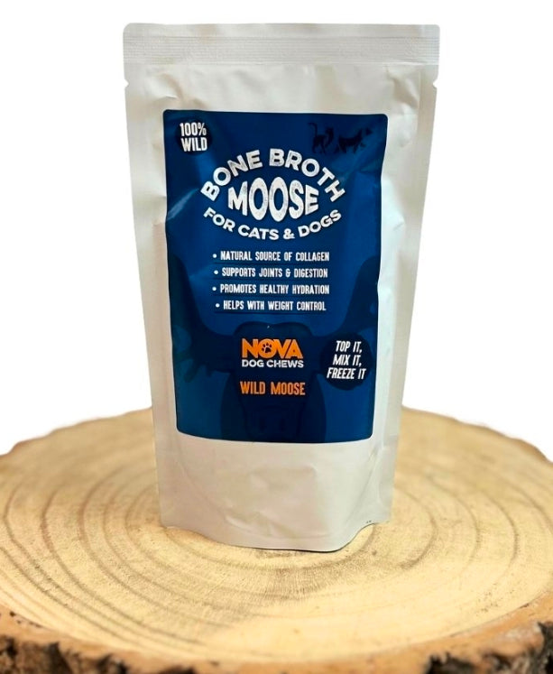 Beinasoðið er náttúruleg uppspretta kollagens sem hjálpar til við að styðja við meltingu og liðamót. Helltu beinasoðinu yfir matinn, notaðu í heimabakað góðgæti eða frystu í nammi stærð fyrir hundinn þinn á heitum degi eða þegar hvolpar eru að fara í gegnum tanntöku.