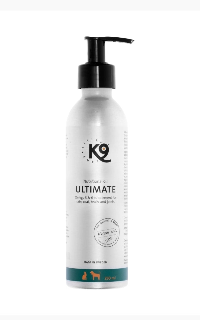 K9 Ultimate næringarolía er þróuð með einstaka blöndu af kaldpressaðri repju- og hörfræsolíu ásamt hágæða þörungasolíu – allt framleitt með sjálfbærni og heilbrigði í fyrirrúmi.