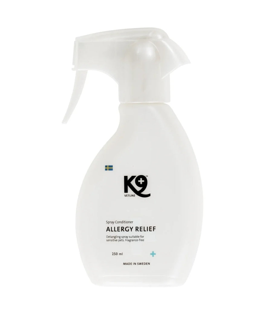 Ilmefnalaust og milt "leave-in" næringar og flókasprey sem er sérstaklega hannað fyrir dýr með viðkvæma húð. Inniheldur Aloe Vera, sem er þekkt fyrir að róa viðkvæma og erta húð. Gefur bæði húð og feld raka en er einnig hitavörn meðan verið er að blása feldinn